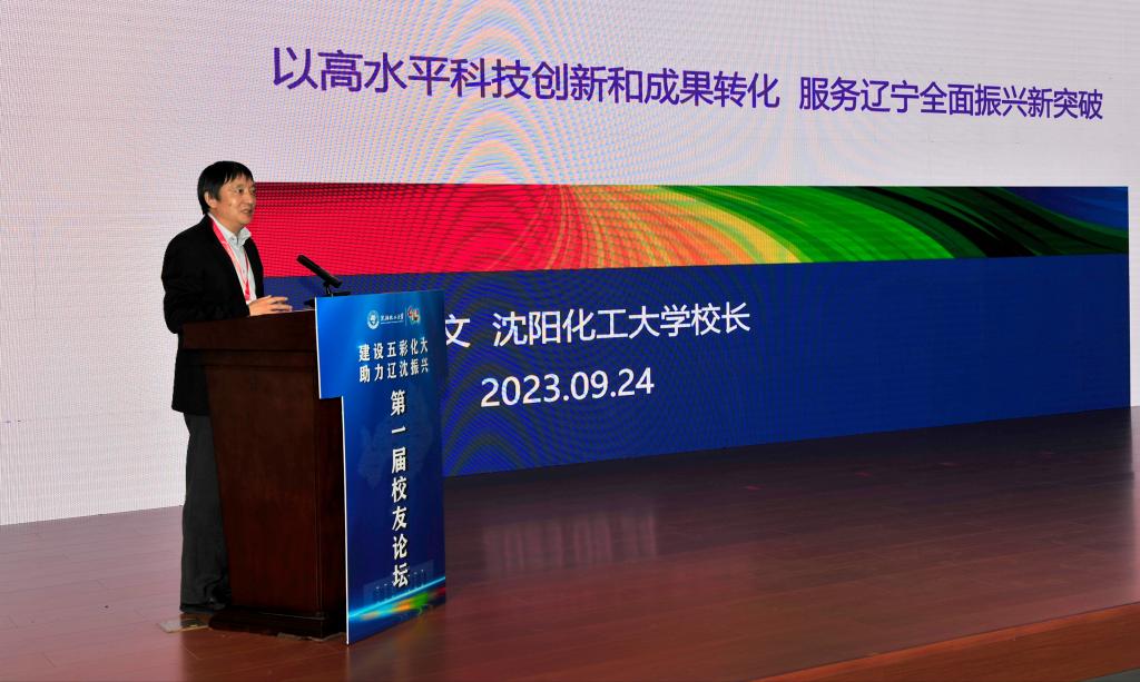 校党委书记王强致欢迎辞。他代表学校党委和全体师生向出席论坛的领导、嘉宾以及校友们表示热烈欢迎和衷心感谢。对于新时代校友工作的开展,他提出五点倡议:一是携手努力构建命运共同体,建设红色育人化大。共同弘扬以“化工报国”为核心的爱国精神和荣校情怀,共同培养更多赓续红色血脉、堪当民族复兴大任的时代新人。二是携手努力构建学术共同体,建设绿色学术化大。持续推动学术成果产出,有效促进科技成果转化,共同服务国家“双碳”战略和我省化工产业转型升级。三是携手努力构建思想共同体,建设橙色创新化大。优化学校办学体制机制,助力校友企业改革发展,共同引领社会风气之先。四是携手努力构建发展共同体,建设蓝色开放化大。在实现双方共享、共建、共赢的同时,主动融入和服务辽宁开放格局和国家“一带一路”发展大局。五是携手努力构建幸福共同体,建设金色奋进化大。广大校友要在各自战线上担当作为、奋勇争先,与母校在建设社会主义现代化强国、实现辽宁全面振兴的新征程上同舟共济、共铸荣光。