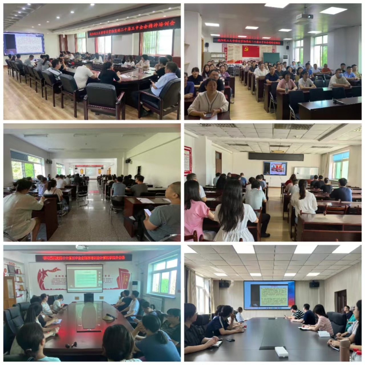 本次培训会以线上线下相结合的方式进行,全体校领导、中层干部、马院教师代表以及团委报国宣讲团学生代表线下参会,各党组织设置线上分会场,组织全体党员集中收看学习。