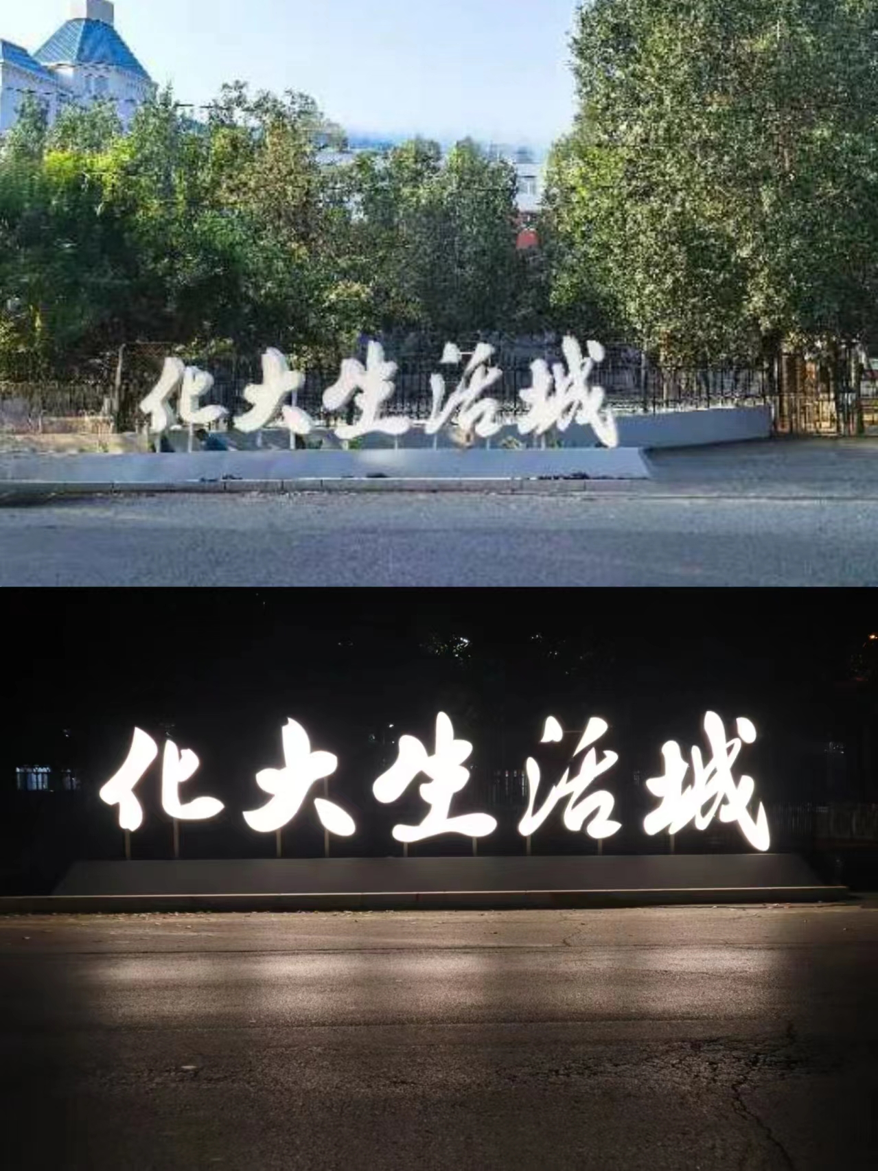 亮化后的“化大生活城”字样