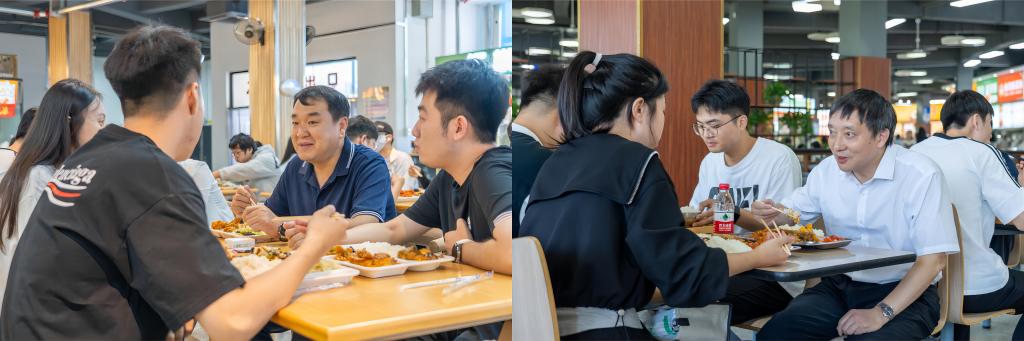 中午,校领导们来到食堂,与同学们围坐在一起共进午餐,关心地询问同学们对食堂饭菜的口味和质量是否满意,了解大家在学校的生活需求、假期的生活状况以及新学期的学习规划,给予他们诚挚的鼓励和切实可行的建议,让学生们深切感受到了学校的浓浓关爱。
