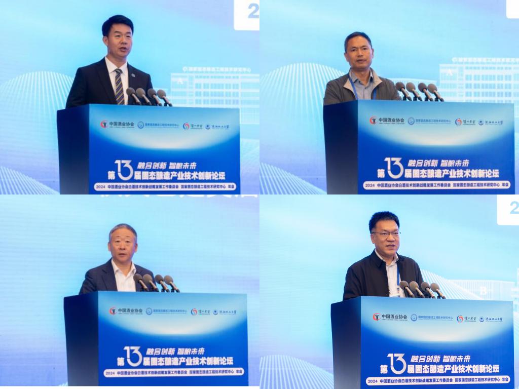 下午,江南大学酿造微生物学与应用酶学研究室主任徐岩,四川大学先进酿造科技创新中心主任、国家固态酿造工程技术研究中心副主任许正宏,茅台科学与技术研究院院长杨帆,山西杏花村汾酒厂股份有限公司总工程师韩英,泸州老窖股份有限公司副总经理、安全环境保护总监、国家固态酿造工程技术研究中心常务副主任张宿义,中国酒业协会白酒技术创新战略发展工作委员会秘书长王旭亮分别以《工业革命背景下中国白酒产业技术发展趋势》《大曲微生物群落功能解析及调控》《酱香型白酒高温大曲蛋白质组解析体系构建及应用研究》《汾酒技术创新研究进展》《科技创新白酒生产力》《白酒技术创新战略发展工作委员会工作汇报》为题作主题报告。