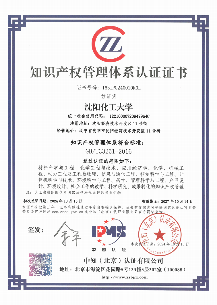 知识产权贯标工作启动以来,科研院多次组织相关职能部门和二级学院教师进行知识产权贯标辅导培训,对标《高等学校知识产权管理规范》,不断探索高校知识产权创造、管理、保护和运用的路径。2024年10月10-11日,中知(北京)认证有限公司现场审核专家组一行对贝博官网进行历时两天的知识产权管理体系认证审核,专家组通过人员访谈、查阅资料等方式现场审核了学校知识产权的文件管理、组织管理、资源管理以及知识产权获取、运用、保护、检查和改进等内容。最终,贝博官网顺利通过认证审核并获得认证证书。