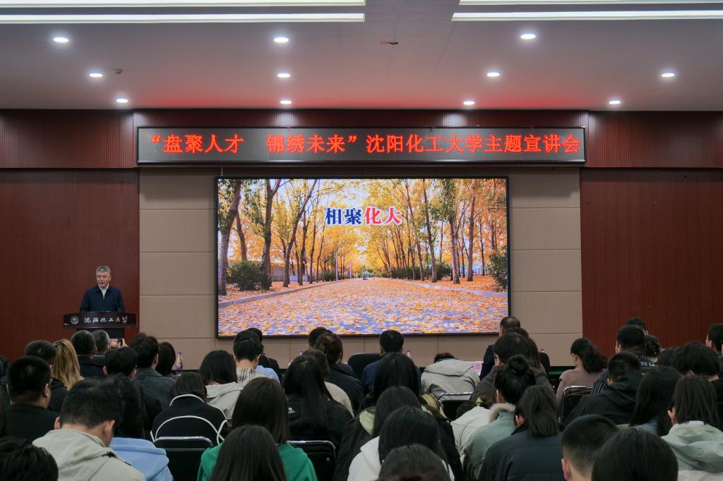 张迎作盘锦城市推介主题宣讲。张迎首先列举了近年来校地双方重点合作成果,并就长期以来学校为盘锦市发展做出的贡献表示感谢。张迎在宣讲中详细介绍了盘锦的生态环境、人文底蕴、资源禀赋及发展态势,并就盘锦市人才引进政策作了重点解读。张迎表示,盘锦市委、市政府高度重视人才引进工作,具有“尊贤礼士、惜才如金、唯才是用”的思想共识与行动举措,期盼优秀的化大毕业生奔赴盘锦、建功盘锦,在盘锦壮阔的天地间描绘最美丽的风景,成就最精彩的自己。