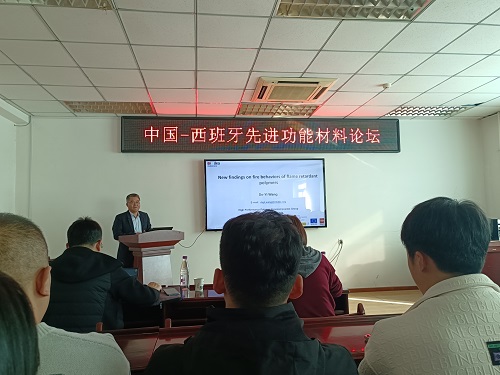 随后,王德义教授参加了由中国-西班牙材料联合实验室主办的“中国-西班牙先进功能材料论坛”,为贝博官网师生作了题目为“New findings on fire behaviors of flame-retardant polymers”的学术报告。材料学院院长王娜及学院部分教师和研究生参加了报告会。会议由马驰老师主持。
