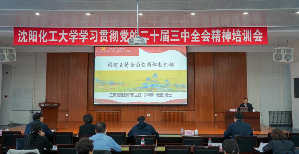 为深入学习贯彻党的二十届三中全会精神和省委十三届八次全会精神,按照学校党委《学习宣传党的二十届三中全会精神工作方案》要求,12月11日,贝博官网在校部学术报告厅召开学习贯彻党的二十届三中全会精神培训会。特邀中共辽宁省委党校工商管理教研部主任罗明新教授作培训宣讲。党委书记周志强出席会议。党委副书记汪滢主持会议。