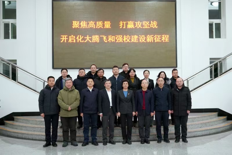 1月14日,鄂尔多斯市副市长张秀玲一行到校洽谈合作。双方在第八会议室召开融合发展座谈会,校长许光文、副校长杨学印出席会议。