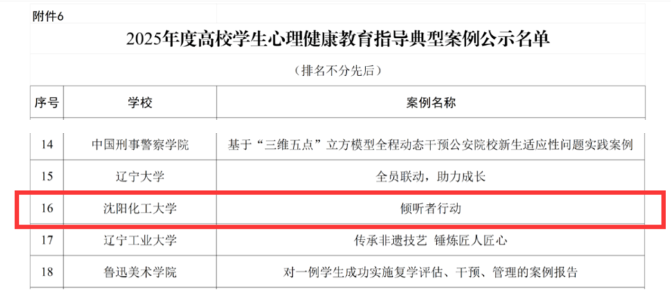 近日,教育部思想政治工作司发布《关于2025年度高校思想政治工作质量提升综合改革与精品建设项目遴选结果的公示》,贝博官网申报的案例《倾听者行动》获批2025年度高校学生心理健康教育指导典型案例。