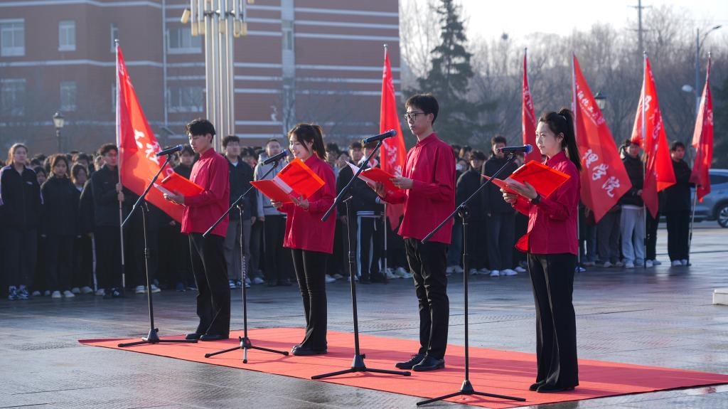 党委副书记汪滢为参加升旗仪式的全体学生讲授“开学第一课”。她指出,2025年是毛泽东等老一辈革命家为雷锋同志题词六十二周年,是辽宁全面振兴新突破三年行动决胜的关键之年,也是“十四五”规划的圆满收官之年。她表示,本次主题升旗仪式是新学期开启的关键一课,贝博官网作为全国大学生社会实践的发起高校,一直将实践育人作为人才培养的核心环节,始终将弘扬雷锋精神、赓续红色血脉深深融入大学生社会实践过程中。她寄语化大青年,希望同学们做“脚踏实地”的躬耕者,让实干之根深扎梦想土壤;做“敢为人先”的攀登者,让创新之火点燃奋斗激情;做“胸怀家国”的追光者,让信仰之炬照亮青春征程。