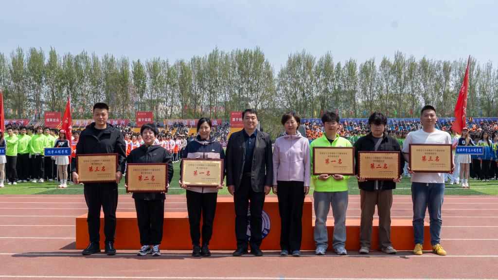 经过近一天半的激烈角逐,机关、机械与动力工程学院、化学工程学院、信息工程学院代表队分获教工团体总分第一至第四名;机械与动力工程学院、化学工程学院、经济与管理学院、材料科学与工程学院代表队分获学生团体总分第一至第四名。机关、经济与管理学院、环境与安全工程学院、理学院、外国语学院、马克思主义学院6个代表队获得教工组体育道德风尚奖;信息工程学院、经济与管理学院、机械与动力工程学院、化学工程学院、国际教育学院、计算机科学与技术学院、材料科学与工程学院、人文与艺术学院8个学院获得学生组体育道德风尚奖。本次比赛共有1人2项(学生男子800米、男子3000米)打破贝博官网纪录。校青年志愿者协会获得本届运动会突出贡献奖。