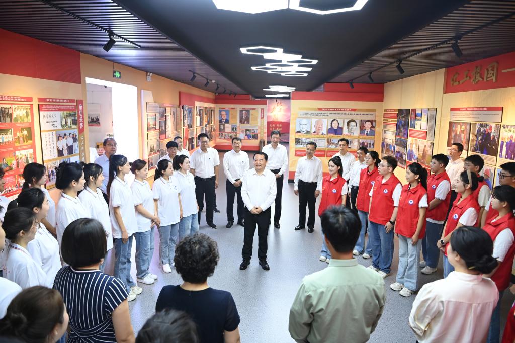 省委书记、省人大常委会主任郝鹏在BB贝博艾弗森官方网站化工报国·新时代雷锋精神育人中心,与师生深入交流。