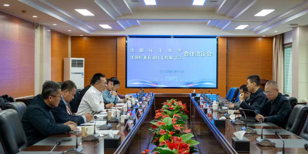 10月17日,华锦阿美石油化工有限公司党委书记张红利一行到贝博官网调研交流。双方在校部第八会议室召开座谈会。