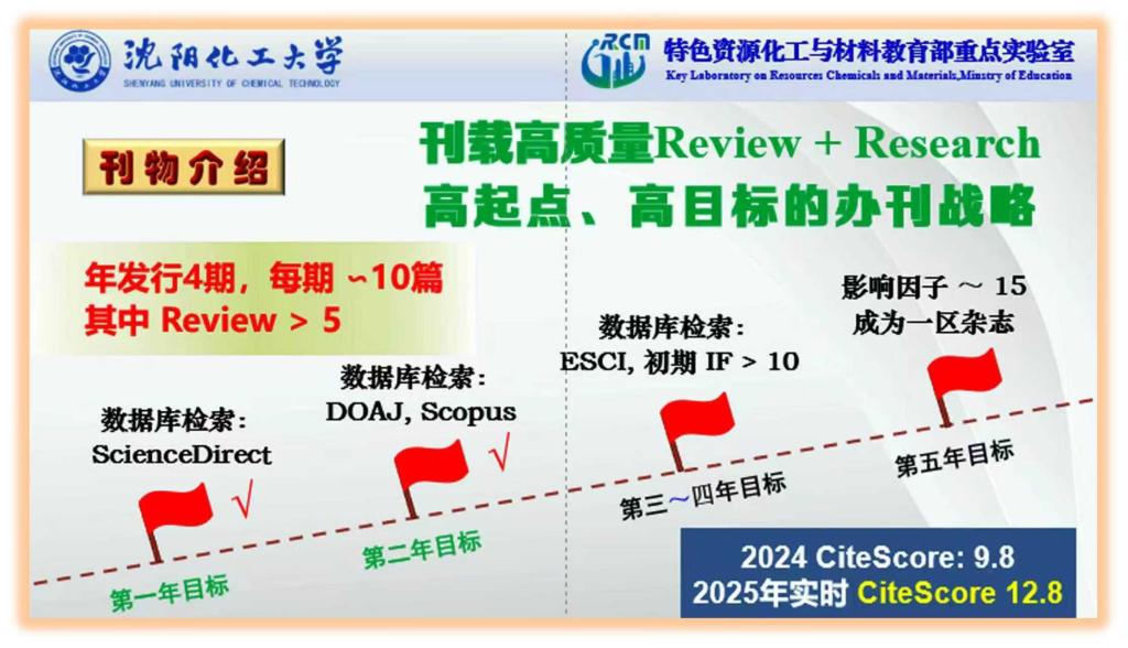 以上成就的取得,是在学校党委的大力支持、领导团队的精心指导、主编团队的战略引领、编委专家的专业把关、编辑部人员的周密策划和全力攻关,以及社会各界对期刊发展的鼓舞和支持下取得的。未来,RCM将以此为基础和契机,整合内外资源和力量、提升办刊标准和质量,依托ScienceDirect平台,依靠编委队伍和编辑团队,实现质量和效率的全面跃升,力争成为中国的领军期刊、成为连接世界资源化工与材料创新的“学术桥梁”。