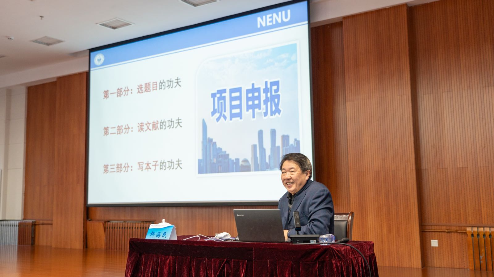 会议第二阶段由周志强主持。特邀东北师范大学原党委副书记、副校长柳海民教授作专题辅导报告。柳海民教授以《项目申报的三个重要功夫》为题,聚焦国家社科基金项目申报的关键环节,从“选题目”“读文献”“写本子”三个维度进行了深入浅出地系统讲解。同时,他对教学成果奖的申报也进行了全面剖析。柳教授的讲座内容高屋建瓴、见解独到,既有理论高度、又有实践操作性,为贝博官网教师有效提升课题申报书与奖项申报材料的质量指明了方向、理清了思路、提供了极具价值的借鉴。
