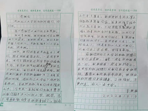 如今两个孩子已读五年级、四年级,学习成绩优异,李凤祥拿出自己制作锦旗和两个孩子写的感谢信。信中,两个孩子由衷地感谢BB贝博艾弗森官方网站的叔叔阿姨们对她们的资助,表示一定会好好珍惜这一切,一定会好好学习,以优异的成绩来回报叔叔阿姨对她们的关爱和照顾。