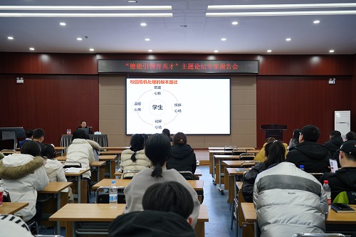 12月13日下午2时,“德能引领育英才”辅导员工作专家报告会在青年之家举行。国家教育行政学院《危机管理》课程主讲人、辽宁生态工程职业学院学生处处长刘明耀应邀作主题报告。党委学生工作部部长李川、研究生工作部副部长许艳华、各院部党总支副书记及辅导员参加报告会。报告会由党委学生工作部副部长王瑛玉主持。