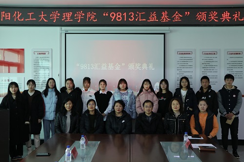 理学院党总支书记徐平宣读了2021年“9813汇益基金”获奖名单,与会嘉宾老师为获奖学生颁奖。