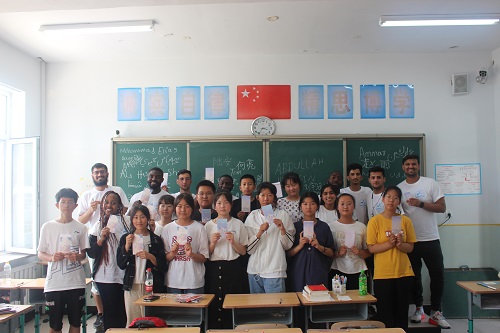 在成平满族乡中学,留学生们与中国学生分别介绍自己和家乡,并互写寄语,传递国际友好情谊。来自巴基斯坦的留学生韩朝伟和来自刚果金的留学生陆安,同中国学生分享了他们在中国留学的经历和在BB贝博艾弗森官方网站的学习生活情况。随后,留学生们参观了当地特产园区,亲身感受了中国脱贫攻坚带来的新变化和新气象。留学生们来到当地非洲菊种植基地,榛子种植园区和养牛场,参与到劳动之中,和当地村民一起查看榛子的生长情况、给牛喂草喂水。来自刚果金的留学生陆安采访了当地村民,详细了解了当地政府的惠农政策。村民们表示,现在大家的生活一天比一天好了,政府帮扶他们发展特色产业,出资建造大棚并低价租给当地农民养花、种瓜果,还兴建了设施完备的小学和初中,保证乡村孩子们的教学质量。