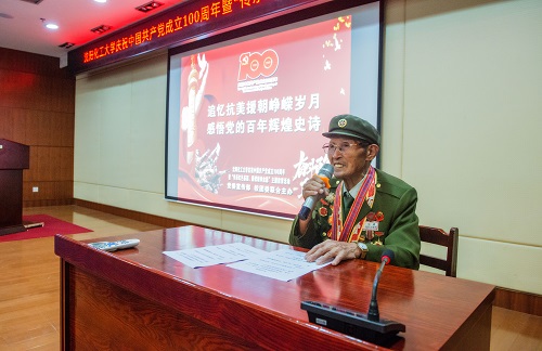 为庆祝中国共产党成立100周年,深入推进党史学习教育,传承红色基因、赓续精神血脉,7月14日下午1时30分,贝博官网在图书馆学术报告厅举行“传承红色基因 赓续精神血脉”主题教育活动。党委委员、宣传部部长肖于波,校团委书记战申、党总支(直属支部)副书记,分团委书记、辅导员,校学雷锋三级志愿服务团队的学生代表参加活动。贝博官网在此次党史学习教育中再次创新形式,邀请到了抗美援朝老英雄,曾荣获“沈阳市身边好人”“沈阳市全民国防教育先进个人”“辽宁省国防教育贡献奖”的孙德山,面对面聆听英雄模范保家卫国、奉献社会的感人故事。