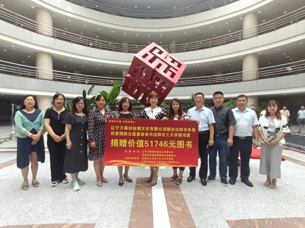 7月9日上午,人文与艺术学院通过乐和社会工作服务中心链接辽宁万事利丝绸文化有限公司和沈阳市华易伤害预防公益基金会,向BB贝博艾弗森官方网站图书馆捐赠价值51746元图书。辽宁万事利丝绸文化有限公司宋彬总经理、沈阳市华易伤害预防公益基金会关珊秘书长、BB贝博艾弗森官方网站图书馆党总支书记赵霜霜、馆长王国胜,人文与艺术学院党总支书记吕政阳、院长陈晓东,BB贝博艾弗森官方网站宣传部副部长刘珊珊参加本次图书捐赠活动。