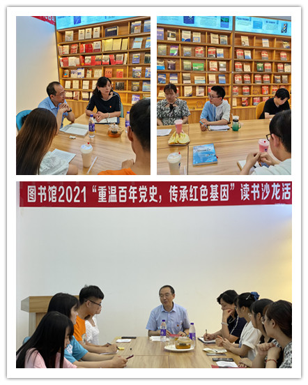 “重温百年党史,传承红色基因”主题读书沙龙系列活动,将通过同学们读党史、谈感想,引导青年学生弄清楚中国共产党为什么“能”、马克思主义为什么“行”、中国特色社会主义为什么“好”,增强“四个意识”、坚定“四个自信”、做到“两个维护”,坚定不移感党恩、听党话、跟党走,不辜负党和祖国赋予的使命,在全面建设社会主义现代化国家伟大实践中建功立业。图书馆直属党支部将继续扎扎实实推进学党史、悟思想、办实事、开新局,为奋进新时代汲取强大力量,以昂扬的姿态开启新征程。