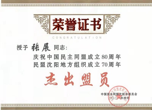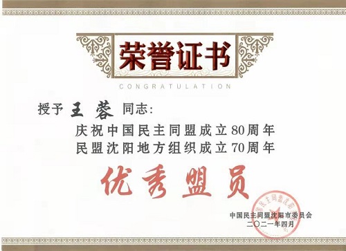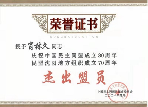今年是中国共产党成立100周年、中国民主同盟成立80周年,也是民盟沈阳地方组织成立70周年。为了重温多党合作历史,铭记多党合作初心,激发全市广大盟员凝心聚力,奋发作为,谱写多党合作事业新篇章。日前,民盟沈阳市委会在中华剧场召开庆祝大会,对为民盟事业发展做出突出贡献的民盟组织和盟员予以表彰。贝博官网肖林久教授、张展教授获得“杰出盟员”荣誉称号,王蓉副教授获“优秀盟员”荣誉称号。