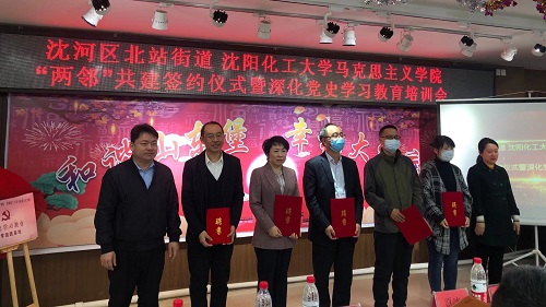 高校为地方社会经济发展提供智力支持是高校的社会责任。多年来,贝博官网马克思主义学院一直探索“街校”(街道社区与高校)合作的模式。4月16日,马克思主义学院与沈河区北站街道共同开展“两邻”共建签约仪式。马克思主义学院领导班子及师生代表,北站街道领导班子,北站街道相关科室(中心)及各社区负责同志、社区党员代表,共100余人参加活动。