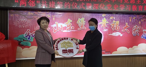 活动中,马克思主义学院院长兼党总支副书记贾冰院长与北站街道党工委书记张智共同为街校共建的党史学习教育研学宣践基地揭牌,颁授了“沈化大马院党群服务(两邻实践)点”标识牌;贾冰院长与街道办事处主任冯洪军共同签订了《街校“两邻”共建社会与区域治理实践实训基地共建协议》;贾冰教授等21名马院教师被北站街道聘任为党史学习教育宣讲员;总结回顾了马克思主义学院与北站街道五年来的街校共建历程,并对马院31名应届毕业生志愿者进行了表彰;学院曹庆新副教授现场做了以《信仰的力量》为主题的党史学习教育宣讲。
