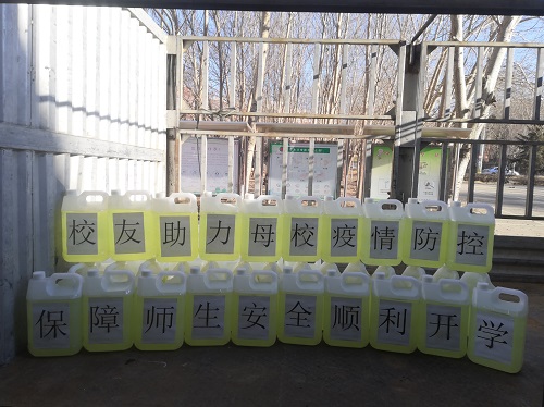 王春杰校友毕业以后一直心系母校。他此次捐赠的高浓度消毒液经稀释后可供学校消杀使用一个学期。他用暖心行动助力母校疫情防控,全力保障师生的健康和安全。