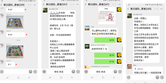贝博官网赵彤、曹迪、孔凡飞、杨明伟等4位老师加入湖北襄阳疫情心理辅导第22团队工作群,配合襄阳市心理咨询师协会,开展心理热线值班、心理讲座、心理健康知识普及等工作,分别针对团体辅导、咨询技术、心理沙盘、社会化等专题开展讲座,制作心理疏导、缓解情绪的音频与视频,与襄阳志愿者热烈讨论,参加疫后社会心理建设学术网络研讨会,和与会专家共同探讨疫后社会心理建设工作方案。4位教师为培植襄阳市民积极向上的社会心态、帮助襄阳市民走出疫情阴霾、更有信心地面对未来的生活做出自己应有的贡献。