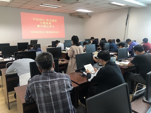 9月24日,材料科学与工程学院党总支全体师生党员在致本楼C座401开展“不忘初心、牢记使命”主题教育集中学习活动。学生党支部、办公室党支部和材料化学党支部分别领学,赵立群、孙静、方庆红三位同志分别针对专题一、二、三进行主题发言并谈自己的心得体会。