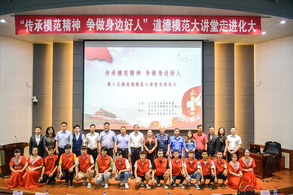 中国好人、辽宁省道德模范、辽宁省三八红旗手杜丽梅女士,沈阳市党代表、辽宁省道德模范、全国五一劳动奖章获得者、辽宁好人苏广林,全国五一劳动奖章获得者、省市劳动模范、感动沈阳人物、辽宁省服务群众好党员姜广祥,人大代表、辽宁省道德模范志愿服务总团秘书长、辽宁省岗位学雷锋学郭明义标兵、辽宁好人杨东文,沈阳身边好人、最美沈动人谷多绵,辽宁省少工委“情暖童心,快乐童伴”计划乡村支教教师、最美沈阳人、和平好人宋世辉依次上台,用自己真实的故事和感人的事迹为在场的师生们上了一堂生动的道德课。他们语言质朴、情感真挚,展现了我省不同行业、不同岗位道德模范平凡而又光彩照人的形象,令人生动而亲切地感受到文明与道德的力量!