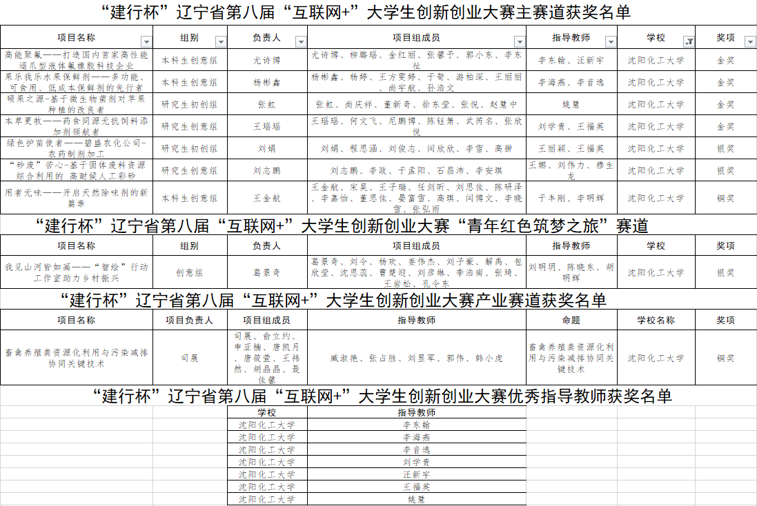 近日,辽宁省建行杯第八届 “互联网+”大学生创新创业大赛圆满闭幕,经过激烈角逐,贝博官网参赛项目在省赛中荣获金奖4项、银奖3项、铜奖2项的优秀成绩,李东翰、李海燕、李音逸、刘学贵、汪新宇、王福英、姚慧老师被评为优秀指导教师。