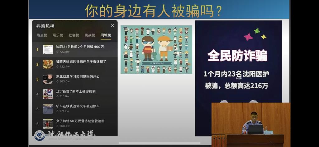 王峰大队长从近五年电信网络诈骗的警情数据分析入手,指出“男性比女性更容易受骗”“40岁以下群体为主要受害群体”。通过剖析诈骗全链条,王峰大队长讲解了“为什么电信网络诈骗如此猖獗”以及“被骗钱财难以追回”,从而进一步警示大家谨防电信网络诈骗。就如何防范电信网络诈骗,王峰大队长列举了大量发生在我们身边的案例,不仅从理论层面进行了防范要点的归纳与总结;还在实操方面,高度还原案例过程,逐一提示风险点与防范举措。就校园里常见的网络刷单诈骗、优惠福利诈骗、贷款诈骗、网络交友诈骗、电商诈骗等,王峰大队长提出了诈骗“不可能三角”,即“在短视频、短信、朋友圈里的‘赚快钱’兼职都是诈骗;需要先向对方支付本金才能赚取返利的,都是诈骗;免费的永远是最贵的”。同时,他提醒同学们“如遇网络诈骗情况应及时报警”;要学法、懂法、守法,在浏览网络时学会甄别信息的真伪,避免上当受骗;下载“国家反诈中心”APP,通过多种形式,提高防范诈骗的安全意识。