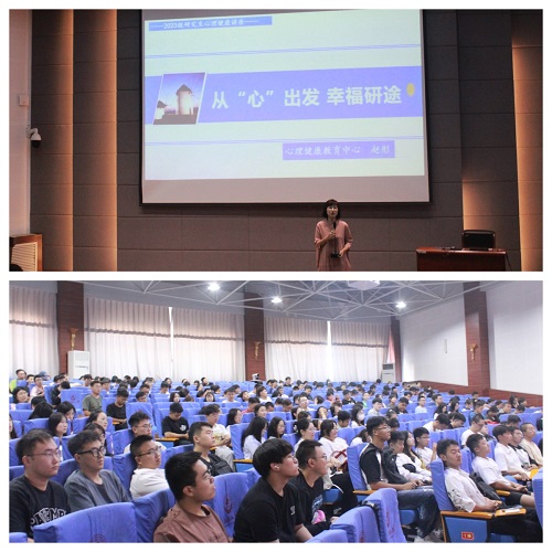 接下来,党委研工部邀请学校心理健康教研室赵彤主任为新生做心理健康专题讲座。赵彤主任结合当前研究生心理健康现状,从心理健康定义、研究生常见的心理压力以及压力应对等三方面为全体新生做案例分析,期间与同学们展开了积极互动,现场氛围热烈。
