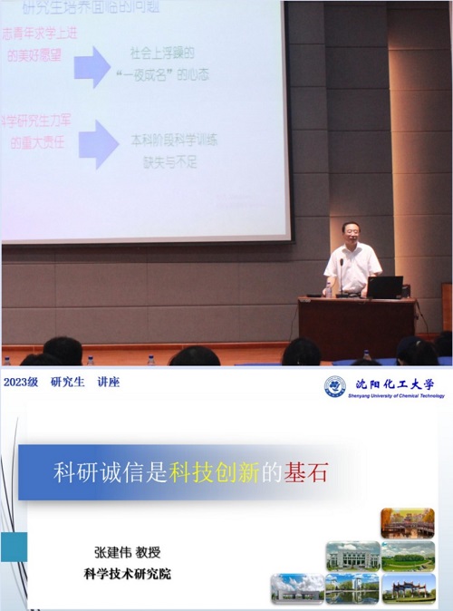 本期讲座第二部分,为进一步推进校园科研诚信建设,加强学术规范管理工作,党委研工部邀请科学技术研究院张建伟院长为大家做“学术道德与诚信教育”专题讲座。张院长以“科研诚信是科技创新的基石”为题,重点从科研诚信的概念与内涵、国家一系列关于加强科研诚信的相关制度和规范以及近年来学术不端行为的查处情况等方面展开,深入浅出的阐述了科研诚信的重要性,同时,也为全体2023级研究生在今后科研工作中如何更好地提高科研诚信意识、学术规范管理理清了思路与方向。
