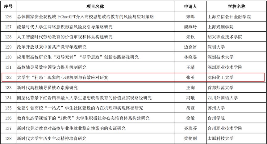 2023年度教育部人文社会科学研究一般项目申报工作启动于本年三月份。党委学生工作部认真组织辅导员开展申报工作。经过严格评审,最终推荐张英等两名辅导员的立项参加教育部社科司评选。经过专家严格评审和面向社会公示,本年度高校辅导员研究专项202项。其中,省内六所高校的七个项目获评立项,贝博官网位列其中。