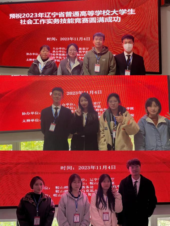 11月3至4日,贝博官网社会工作专业学生由人文与艺术学院院长李漫红、陈晓东教授带队参加由辽宁省教育厅主办、鞍山师范学院承办的2023年辽宁省普通高等学校本科大学生社会工作实务技能竞赛。通过校内选拔确定的三支参加省赛队伍,获一、二、三等奖各一项,杨明伟、黄静雅被评为优秀指导教师。