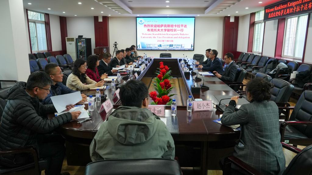 副校长孙亚光首先代表学校对坦卡拉干达布克托夫副校长一行的到来表示热烈欢迎。随后,两校分别介绍了各自在化学、化工及材料领域的研究方向、科研成果及合作意向,并在学生交流、教师互访、联合科研、共建技术转移中心等方面进行充分讨论,达成了初步共识。