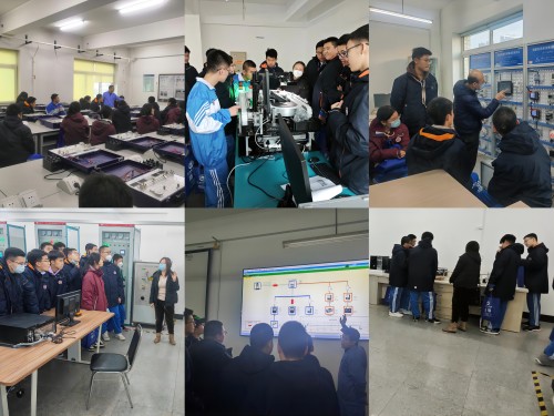学校相关部门和学院在各个参观点位都配备了教师,认真细致地向参观师生介绍实验室功能、各类仪器设备的使用方法与作用。在基础化学实验中心,姚淑华老师为同学们演示了奇妙的旋光测试,王淑菊老师为同学们介绍了精密天平的使用方法,徐嘉老师演示了“水硬度测定实验”,充满了科学性、应用性和趣味性。在化学工程实验中心,张翔老师向同学们介绍了多项化工单元操作的方法及意义。在煤制甲醇仿真工厂,刘东斌、王明艳老师向大家介绍了煤化工企业的主要生产工艺流程和设备控制。在高分子材料成型加工实训中心,李鹏老师向同学们演示了硅胶杯垫和PP材质晾衣架的注塑生产过程。在分析测试中心,孙长亮老师向同学们介绍了各类检测设备的功能与作用。在创新创业学院,张小玲老师向同学们介绍了工程训练实训现代制造模块和传统制造模块,张帅老师给学生们展示了VR实训的先进性。在化工安全与应急管理实训中心,于立富老师向同学们介绍了典型化工装置生产过程与自动化操作方法。在图书馆,崔文浩、屈菲 、王欢、王姝老师带领同学们依次参观了自然科学图书室、社会科学图书室、电子阅览室、教师文库、自习室以及研修室,丰富的馆藏和优质的环境令同学们大开眼界。在大学物理实验中心,老师们精选了光、电和力学原理的项目,王春晖老师为同学详细介绍霍尔效应实验原理及操作流程,盛思远老师带领同学们做了磁悬浮实验,石小飞老师介绍了迈克尔孙干涉仪实验的原理及现象,卢海云老师为同学们演示了牛顿环实验。在人工智能实验室,郭烁老师为同学们介绍了机器学习实训平台,并演示了人工智能工业缺陷检测流水线的控制流程。在电子信息工程实验室,李朋辉老师为同学们介绍了智能信息系统集成实训平台,并演示了远程设备自动控制流程。在电力系统自动化实验室,史晓琳老师为同学们讲解并演示了发电机运行的控制流程。在新能源与智能电网实验室,安树祥老师为同学们介绍了微电网的拓扑结构以及光伏发电的操作流程。在自动化专业实验室,郭小萍老师为同学们介绍了流程工业典型过程控制系统,实验室的实物连接方式及工作过程。同学们认真听讲、积极互动,并在老师的指导下参与其中,亲身感受科学的魅力。