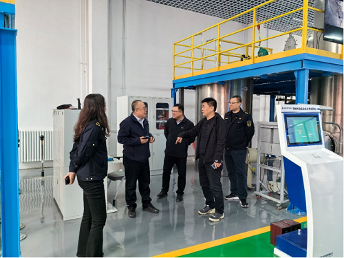 调研组一行参观了化工安全与应急管理实训中心设备设施区域和培训场地。张福群详细介绍了危险化工工艺实训装置、化工特殊作业安全技能实训装备、典型化工设备操作与检维修技能实训装备、虚拟仿真培训区等九大功能区域的设备设施。安全工程专业教师及研究生代表现场演示操作。