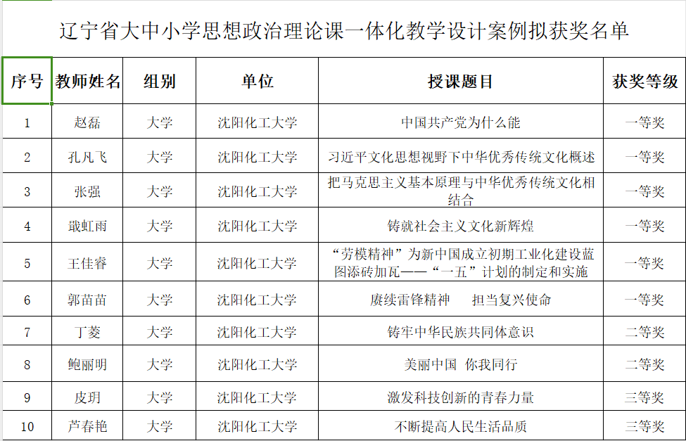 近日,辽宁省“大中小学思政课一体化建设”专题教学设计案例评选活动获奖名单揭晓,贝博官网马克思主义学院教师提交的专题教学设计教案共获得一等奖6项、二等奖2项、三等奖2项,取得了近年来省内教学案例比赛的最好成绩。