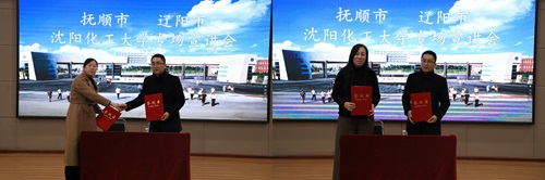 招生与就业工作处副处长曾祥福分别同抚顺市与辽阳市就业和人才服务中心负责人签订了校地就业合作框架协议。