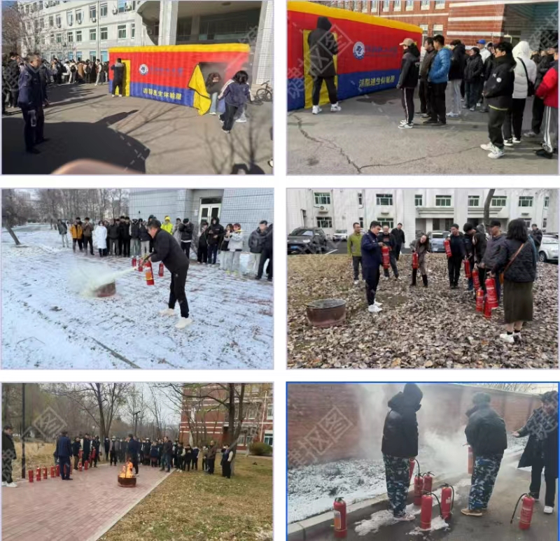 全国消防宣传月期间,保卫处分别为国际教育学院、体育部、网络与信息化中心、校医院、创新创业学院、楼宇中心、机械与动力工程学院、功能分子研究所、图书馆、计算机科学与技术学院、经济与管理学院、材料科学与工程学院、产研院等多个部门开展消防知识宣讲。向师生普及火灾的常见原因、报警注意事项、灭火器和消防栓等消防设备使用方法等基础消防知识。同时开展灭火演练与火灾疏散逃生演练。灭火演练,让师生亲身参与,熟练掌握使用灭火器灭火;逃生演练,让师生深刻认识到在火灾中保持冷静以及遵循正确逃生路线的重要性。宣传月期间,发放宣传各类消防宣传资料600多份,并在食堂播放消防安全警示教育片,在校园内营造良好的宣传氛围。