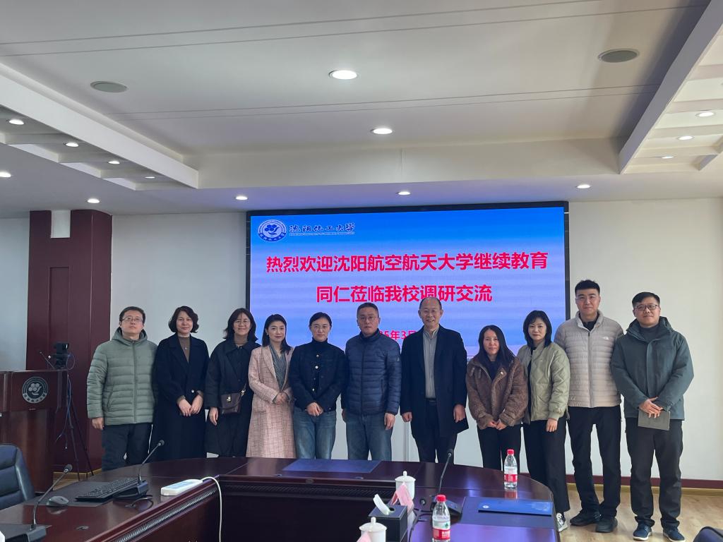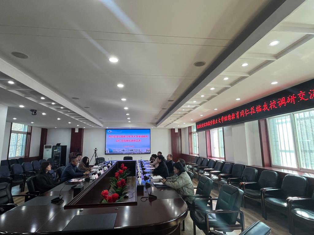 3月19日,沈阳航空航天大学继续教育学院院长张猛、书记于经宇一行七人到贝博官网开展调研交流。继续教育学院院长丁华、副院长孙伶、刘宁,以及学院招生工作人员参加交流会,会议由丁华主持。