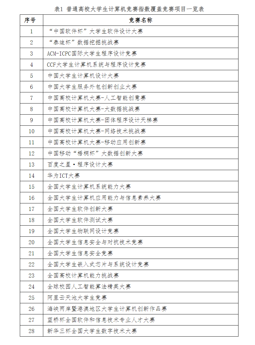附:《普通高校大学生计算机竞赛指数(本科,2025版)》