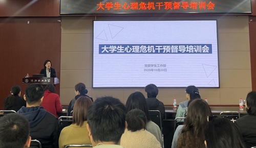 陈阳以《学生心理危机的理解与应对》为题,结合危机案例,重点阐述心理危机的概念和界定、当前大学生心理健康状况、危机情况多渠道收集、需重点关注的人群及时间节点、危机心理干预策略等,并对现场教师提出的问题进行互动解答。