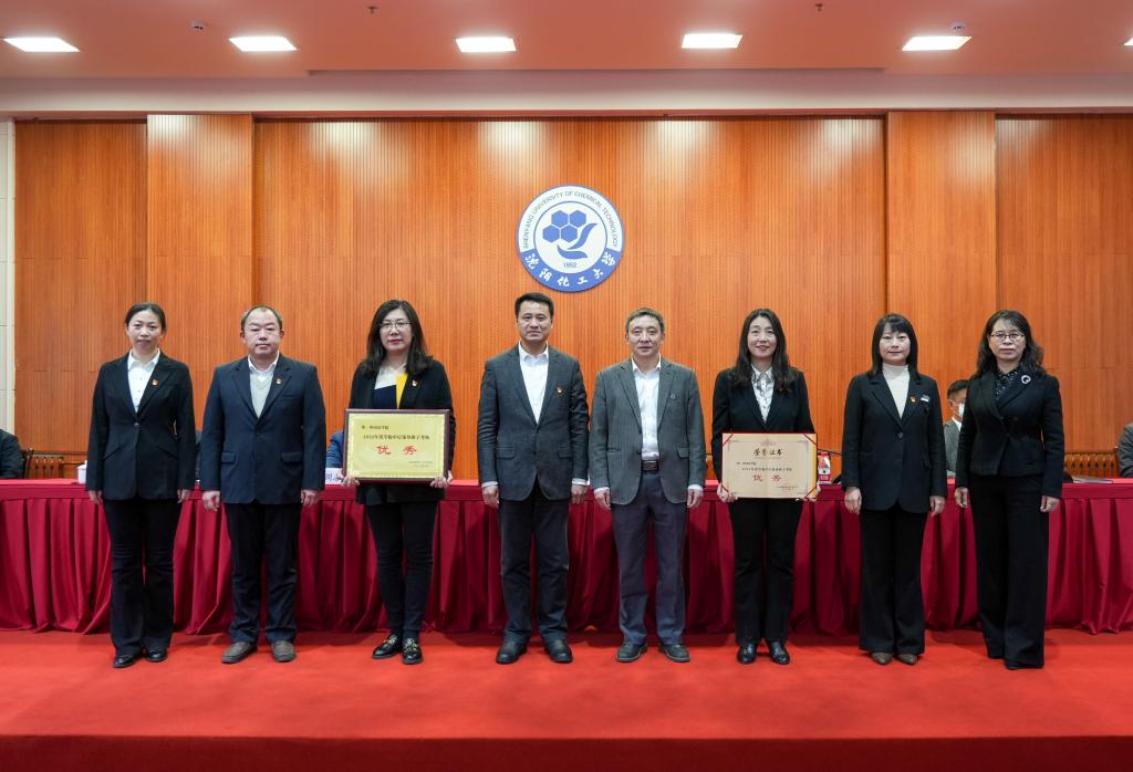 党委书记王强、校长许光文为2022年度考核优秀的中层领导班子颁发奖牌和证书。