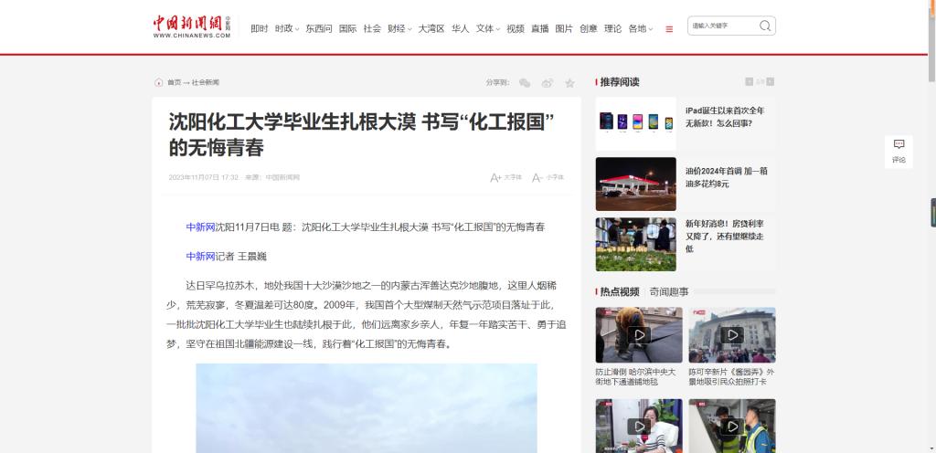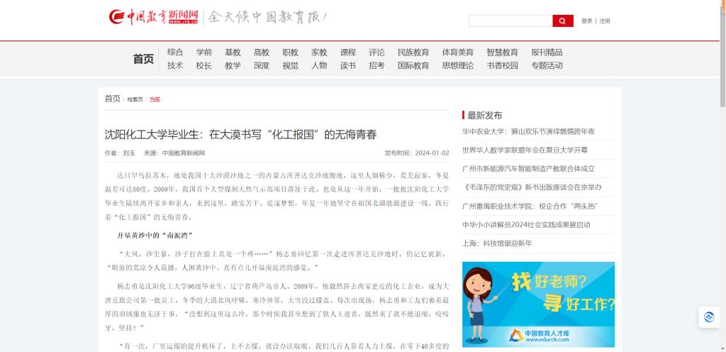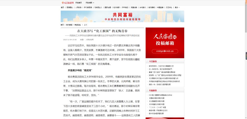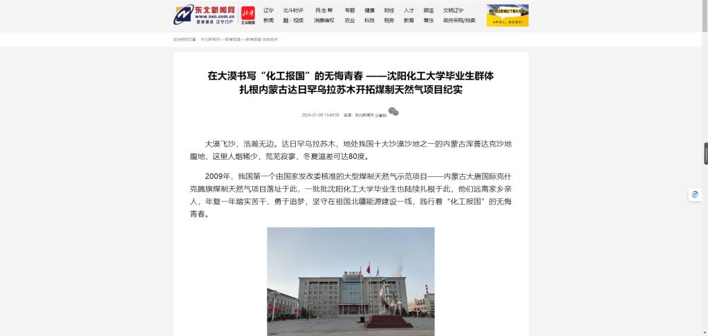 贝博官网始终坚守“化工报国”初心,把立德树人作为根本任务,把服务社会作为根本使命。七秩春秋,育10万栋梁。科技精英、企业领军、政府骨干、创业先锋,数代化大学子传承红色基因,担负化工行业发展重任,矢志化工报国。今年,学校党委进一步凝炼“化工报国”的精神内涵,策划采访各行各业的化大毕业生,充分展现“化大人”用奋斗坚守、勤劳智慧,砥砺化工强国之志,实践化工报国之行。9月下旬,学校组织采访组深入内蒙古达日罕乌拉苏木实地走访,对扎根于内蒙古大唐国际克什克腾旗煤制天然气项目的42名毕业生进行专题交流访谈,整理形成纪实报道。近日,《中国教育报》、人民论坛网、中国新闻网、《中国化工报》、东北新闻网、辽宁省教育厅官网、辽宁高校思政网官微等十几家主流媒体相继报道贝博官网毕业生在大漠书写“化工报国”的无悔青春。