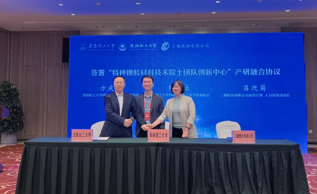 华南理工大学是教育部直属的全国重点大学,是国家“双一流”建设A类高校,其雄厚的师资力量、先进的教学设施、卓越的科研实力,在国内外享有盛名;三橡股份有限公司是国内最早的航空轮胎研制和生产企业,研制生产了我国第一条航空轮胎,为我国特种橡胶材料制品研发与生产作出了重要贡献;BB贝博艾弗森官方网站是国家最早在东北设置的化工类高校,入选辽宁省“双一流”重点建设高校,曾创新染料树脂、橡胶医药、硼镁材料等众多原始技术,填补领域空白,为国家作出了开拓性贡献。