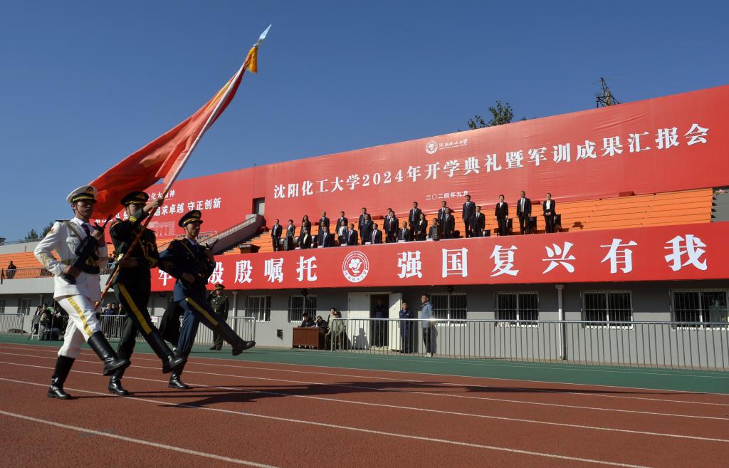 开学典礼前,举行了军训成果汇报会。各学院军训方队身穿戎装、英姿飒爽,进行了精彩的队列表演。同学们精神饱满、步伐整齐、口号嘹亮,充分展现了本次军训的丰硕成果,彰显出化大青年学子昂扬向上的精神风貌和矢志化工报国的理想信念。